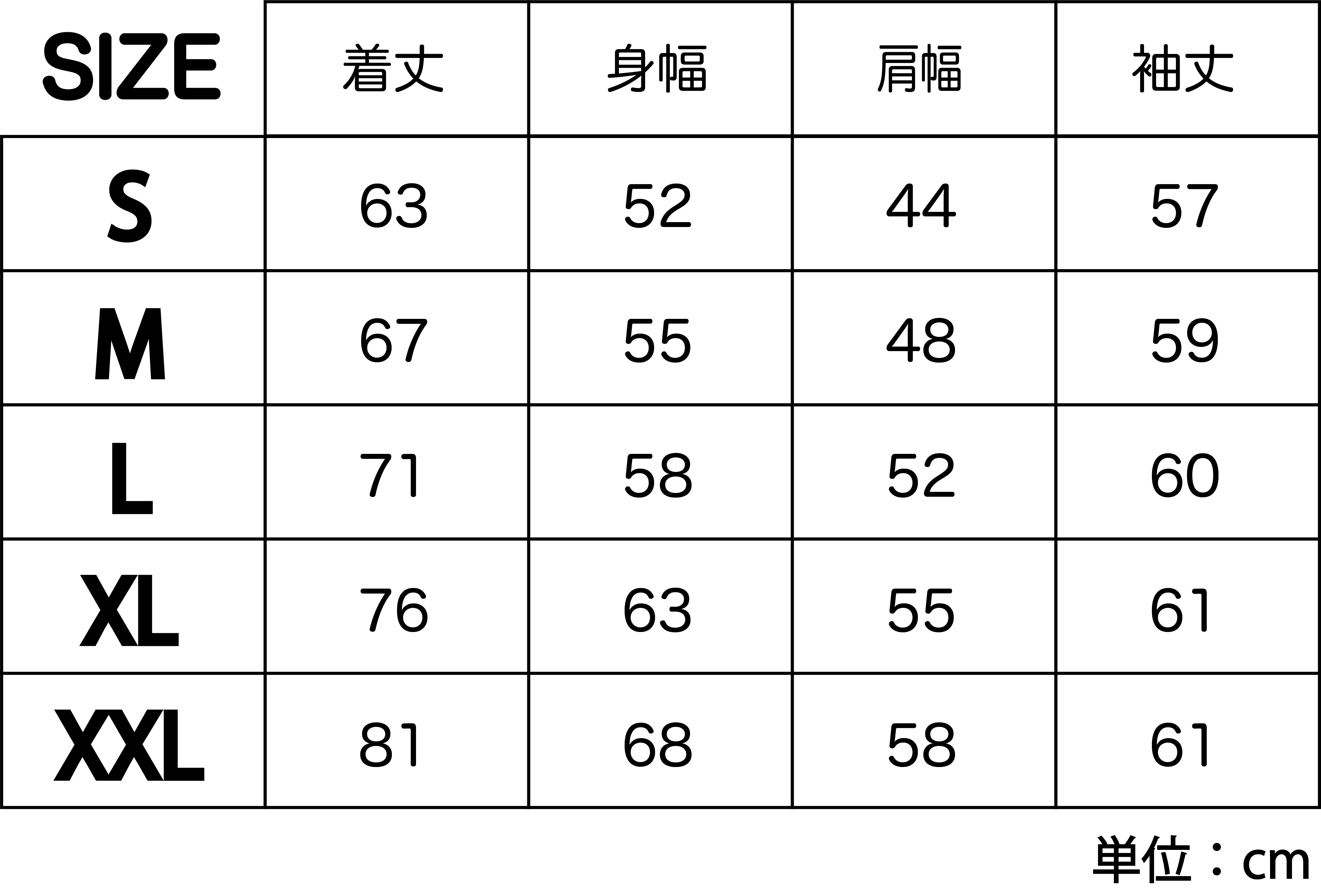 ・XXL 身丈81 身幅68 肩幅58 袖丈61 (単位cm)